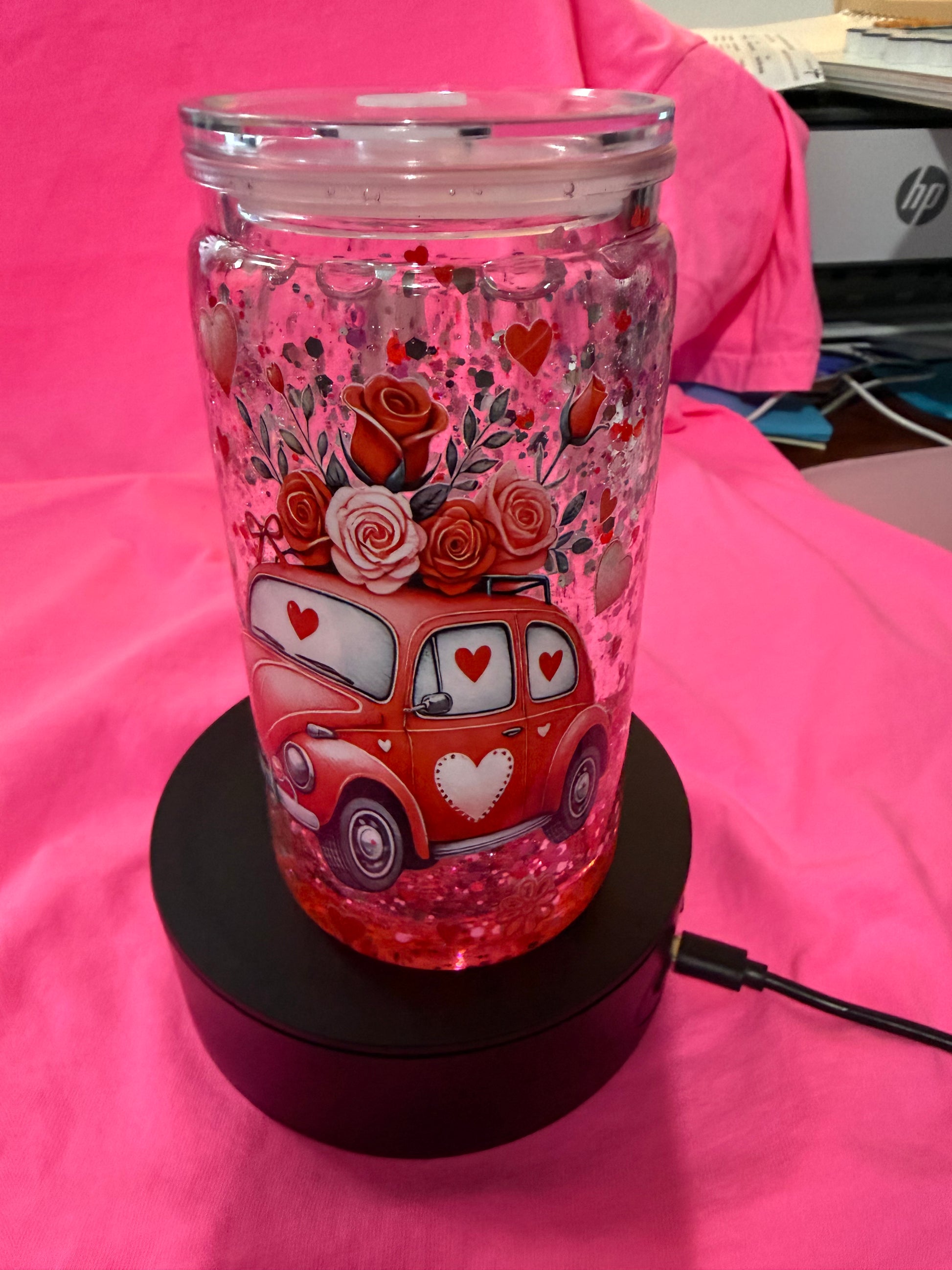 16oz Valentine’s snowglobe tumbler